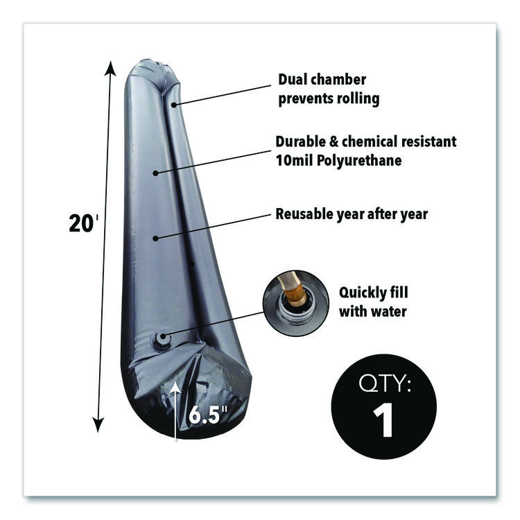 Water Curbs use contained water to control and divert other flood water. Height: 6.5"; Length: 20 ft; Width: 6.5"; Color(s): Black.