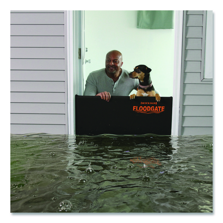 Quick Dam Flood Gates quickly block entryways from oncoming flood water. Height: 26"; Length: 55" to 60"; Width: 1"; Color(s): Black.
