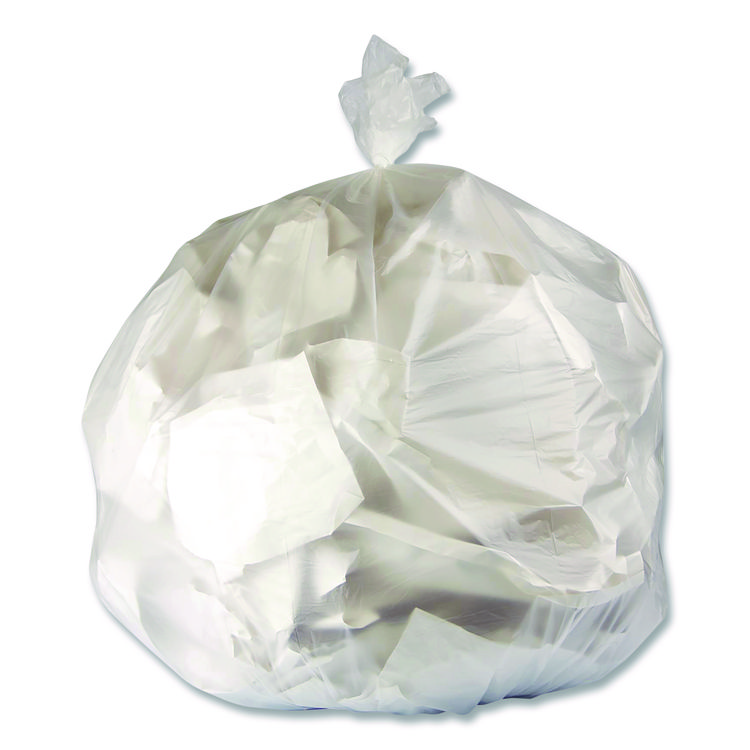 High-Density Waste Can Liners, 33 gal, 11 mic, 33 x 40, Natural, Roll, 25 Bags/Roll, 20 Rolls/Carton