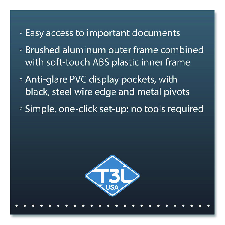 The VEO Desk System offers a practical and professional solution for keeping important presentation and reference documents easily accessible. This award-winning desk stand is designed for quick and simple setup, providing ultra-stability for reliable use. The elegant stand features a sleek aluminum alloy base with a black soft grain finish, adding a sophisticated touch to any workspace. It includes 10 universal display panels that can hold both letter-size and A4-size documents. With a total of 20 viewing sides, the system maximizes document visibility and organization. Ideal for professionals, this desk system ensures that key materials are always within reach, helping you stay organized and efficient. Rack Style: Desktop; Width: 12"; Depth: 16"; Height: 5".